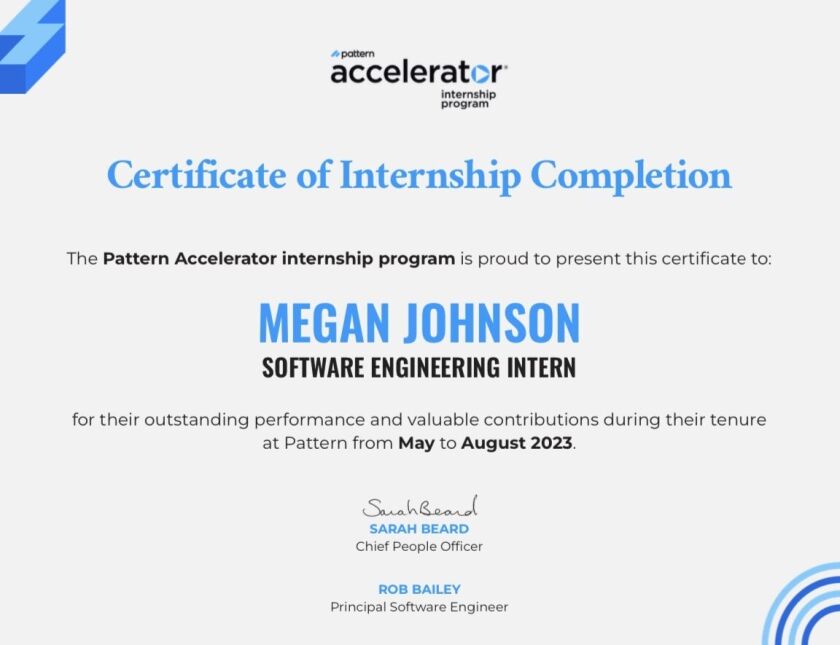 "Wrapping up my software engineering internship at Pattern® today! So grateful for the opportunity to lead and contribute to tangible projects with real impact. 🚀 Big thanks to my incredible colleagues and fellow interns for their guidance and support throughout the summer. Such an amazing opportunity, thank you Pattern! Now onto the Masters program (MISM) in just a couple weeks. Excited for the new challenges and continued development!"